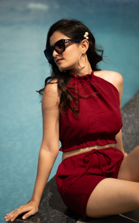 Such a chic set! The material is soft, and the color is deep and vibrant. It’s the perfect outfit for any event. Love it!